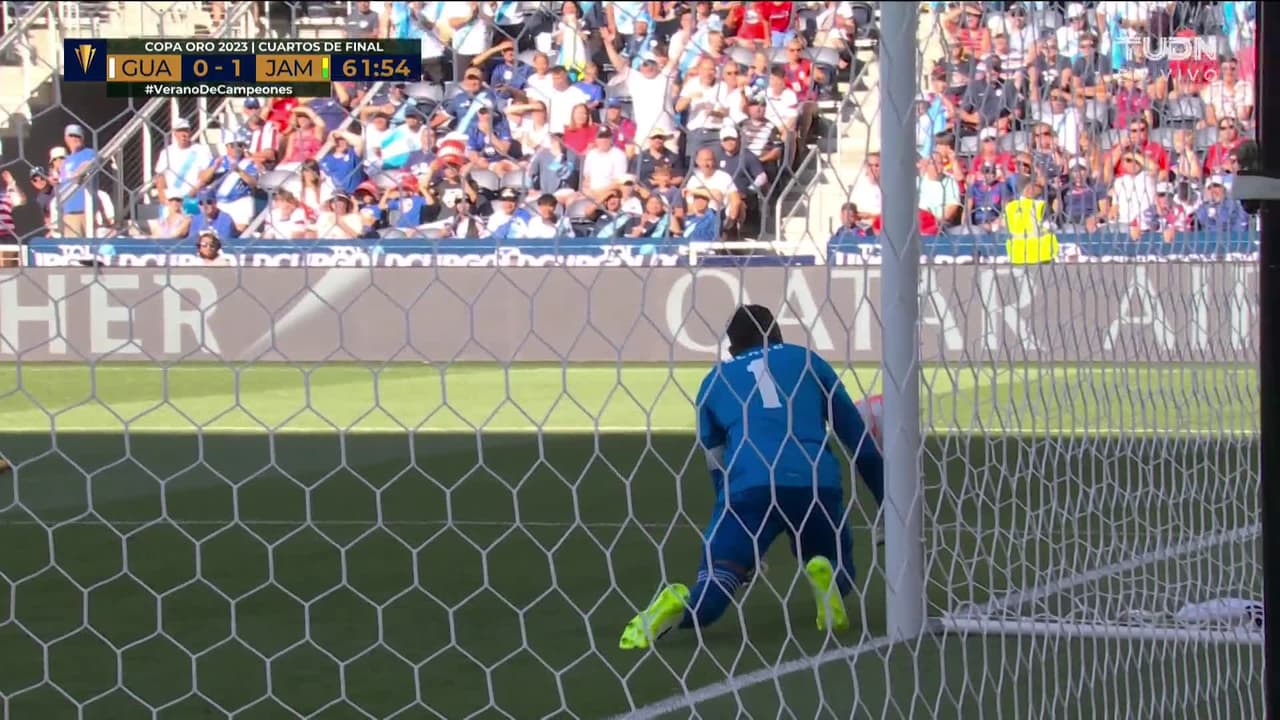 Tiro atajado por abajo a la izquierda. José Ardón (Guatemala) zurdazo desde el lado izquierdo dentro del área. Asistencia de Carlos Mejía.