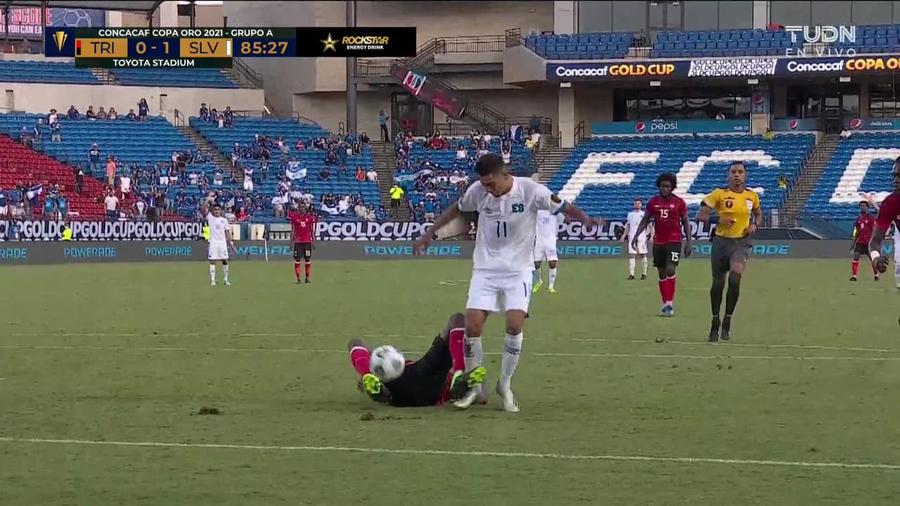 Tiro atajado raso al centro del arco. Juan Carlos Portillo (El Salvador) Disparo con la derecha desde el centro del área.