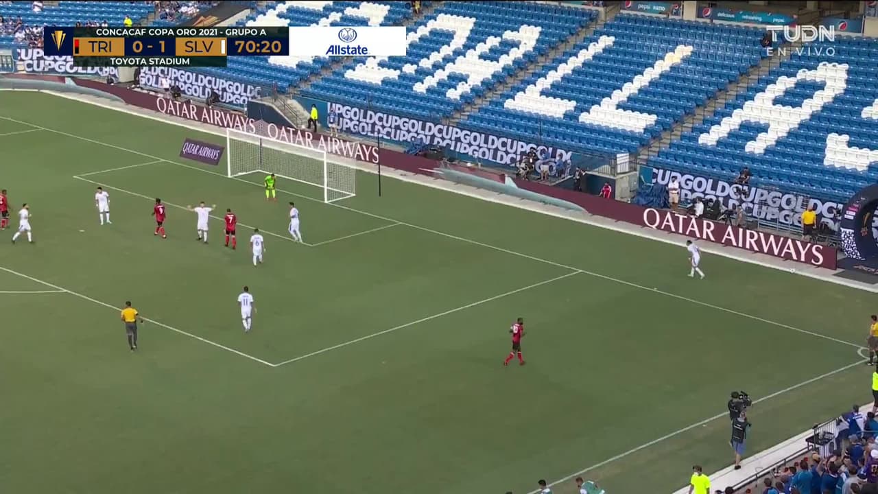 Tiro atajado Por arriba en el centro del arco. Marcus Joseph (Trinidad and Tobago) zurdazo desde fuera del área.