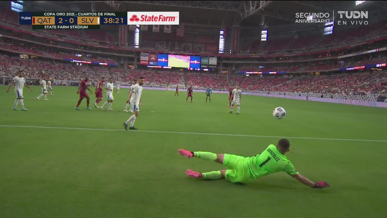 Qatar sigue insistente y portero se tiene que lanzar para un atajadón de fotografía, al 39