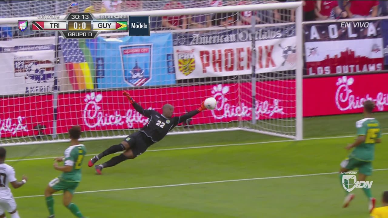 Guyana se estaba salvando de recibir el primer gol en contra gracias al buen trabajo de su arquero que tapó un nuevo disparo franco en cuestión de 10 minutos. Al cierre de la primera mitad hubo otra llegada importante de Trinidad y Tobago pero Levi definió fatal tras hacerla de crack.