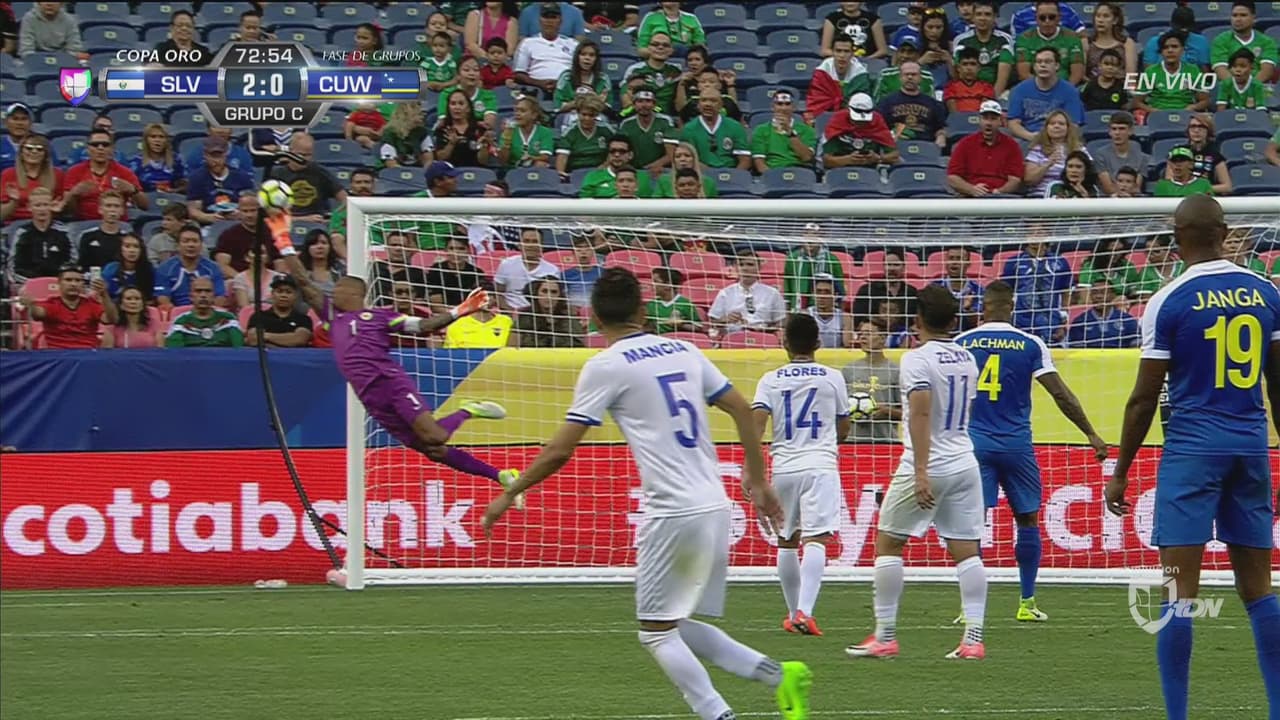 Disparo lejano que el arquero caribeño mandó a córner tras un espectacular vuelo.