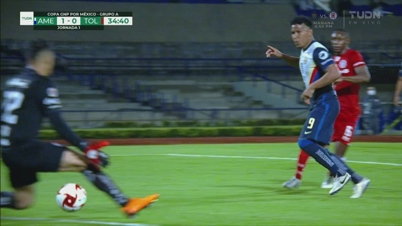 Henry Martín acabó con la agonía de cantar un gol del América con un tanto al minuto 13, luego de un disparo de Emanuel Aguilera que soltó el portero escarlata Luis García para que el delantero de las Águilas marcara.