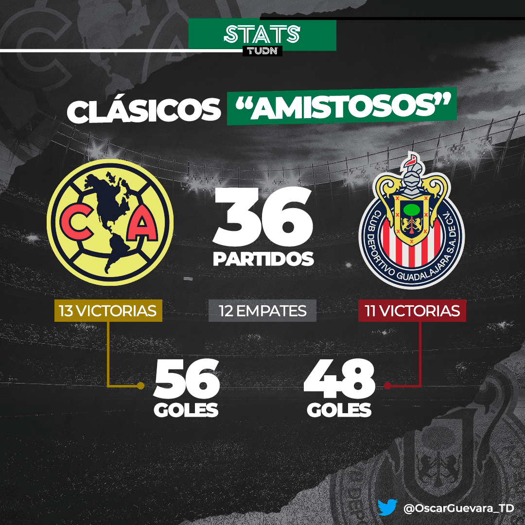 Son 13 los partidos entre América y Chivas en torneos no oficiales, además de los mencionados en Ciudad Universitaria hay otros siete y las Águilas dominan ampliamente con 8 ganados por 3 perdidos y 2 empatados.