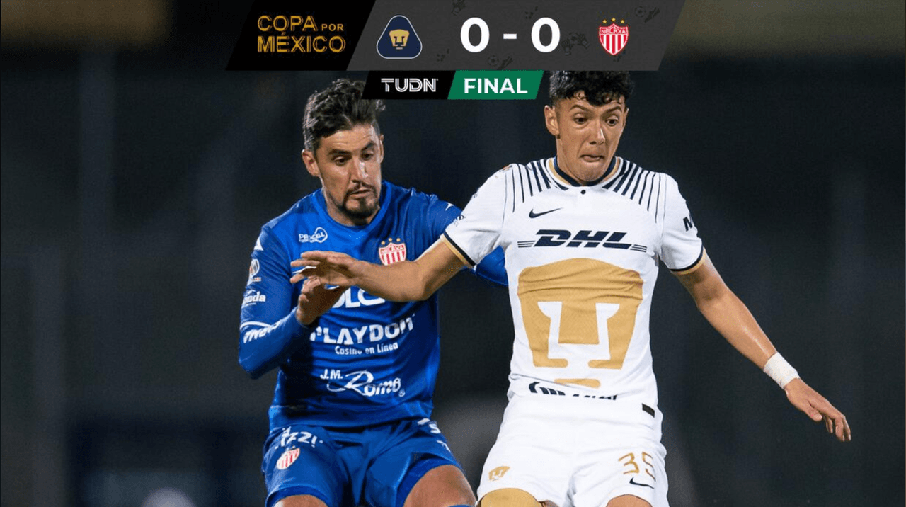 Pumas y Necaxa siguen sin ganar en la Copa por México 2022 y empataron sin goles en el Estadio Olímpico Universitario en su penúltimo partido amistoso rumbo al Clausura 2023 de la Liga MX.