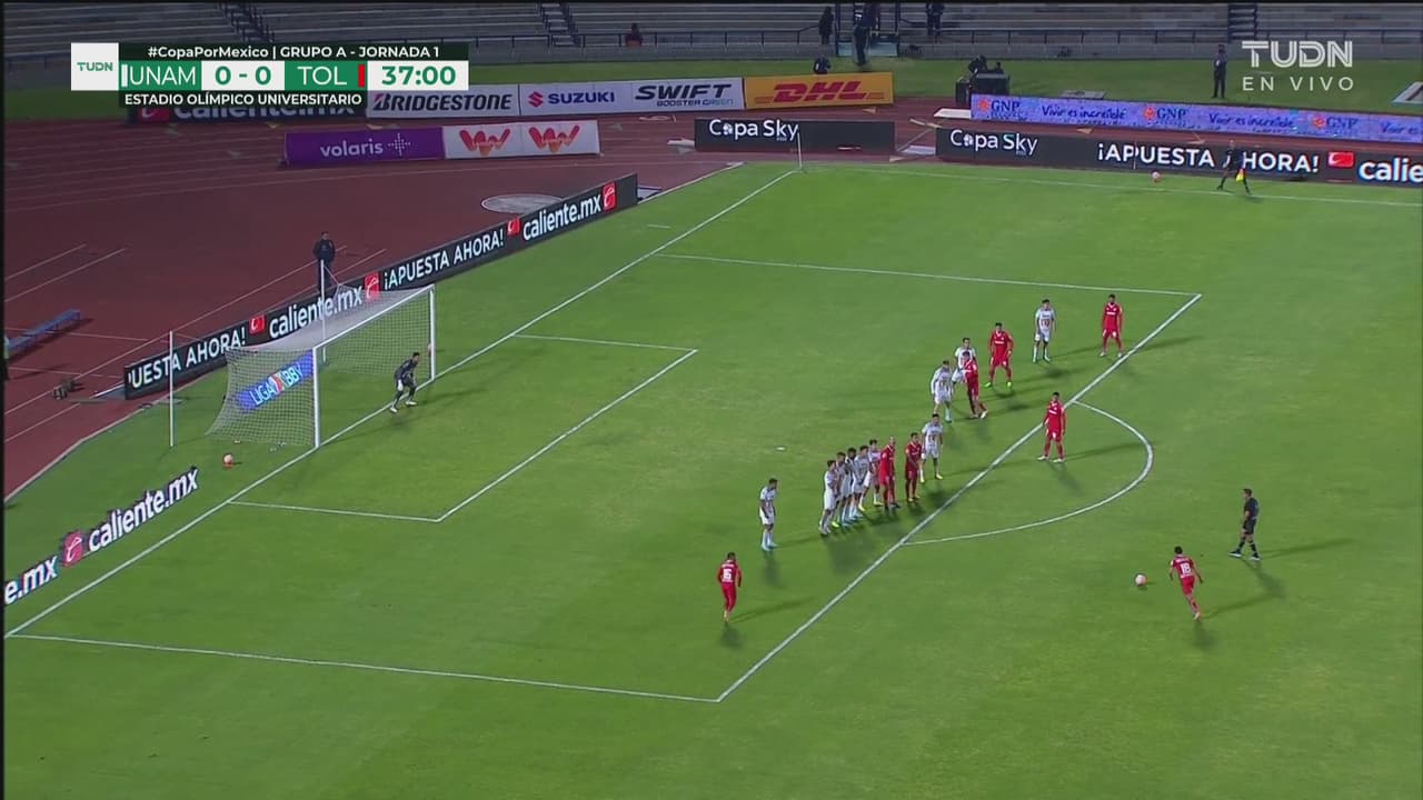 ¡Apenas arriba! Navarro cobra el tiro libre y se va encima del travesaño