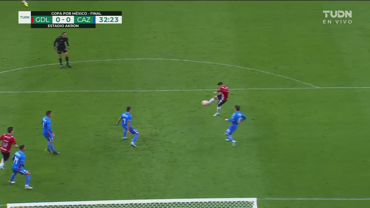 El ‘Chapo’ Sánchez alcanza a mandar el centro y Pérez se acomoda para rematar de primera sin mucho éxito.