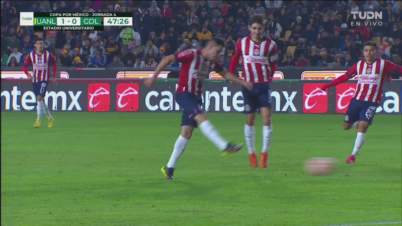 Chivas se anima con disparo lejano de su canterano y Nahuel se lanza por precaución al minuto 48’.
