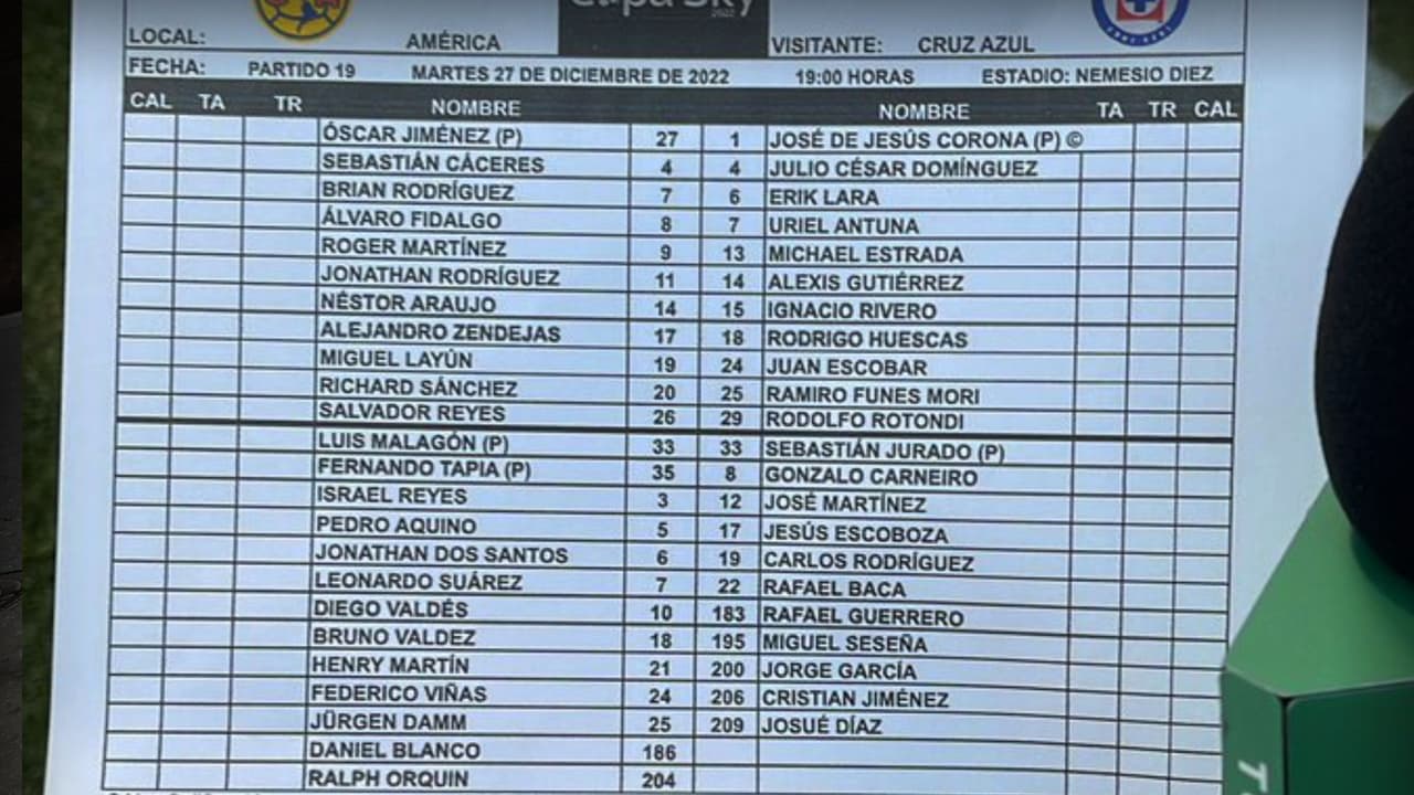 ESTE ES EL ONCE DEL AMÉRICA VS. CRUZ AZUL