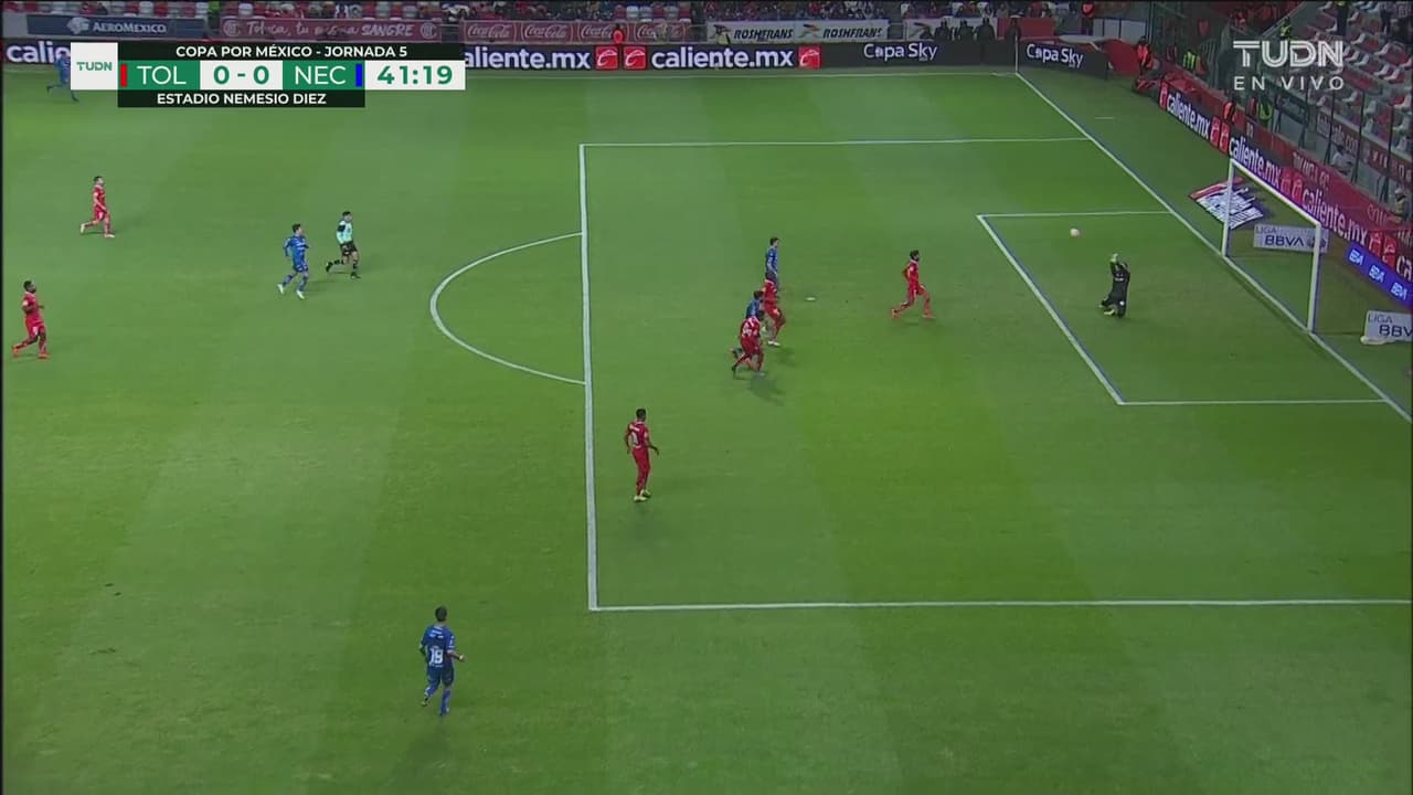 El guardameta brasileño evita el gol del Necaxa tras una buena jugada del argentino al 41’.