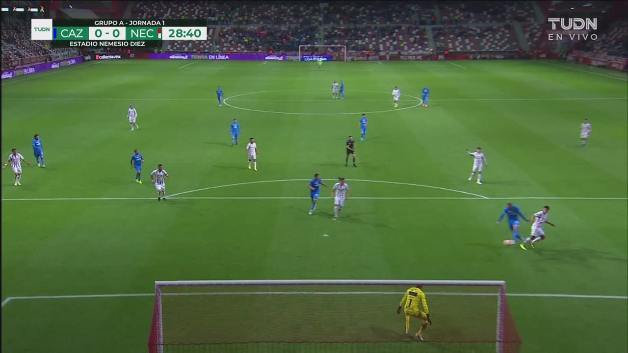 ‘Shaggy’ Martínez vuelve a centrarle a Carlos Rodolfo, pero el portero reacciona para sacar el balón a córner.