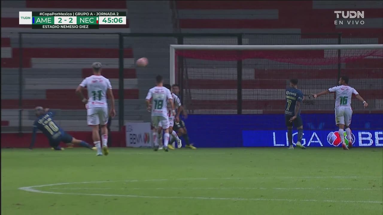 ¡Le pega horrible! Valdés la envía por arriba ante Necaxa