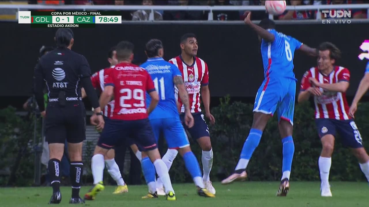 El uruguayo estira su brazo para disputar el balón, pero termina abriendo la ceja de Rubén.