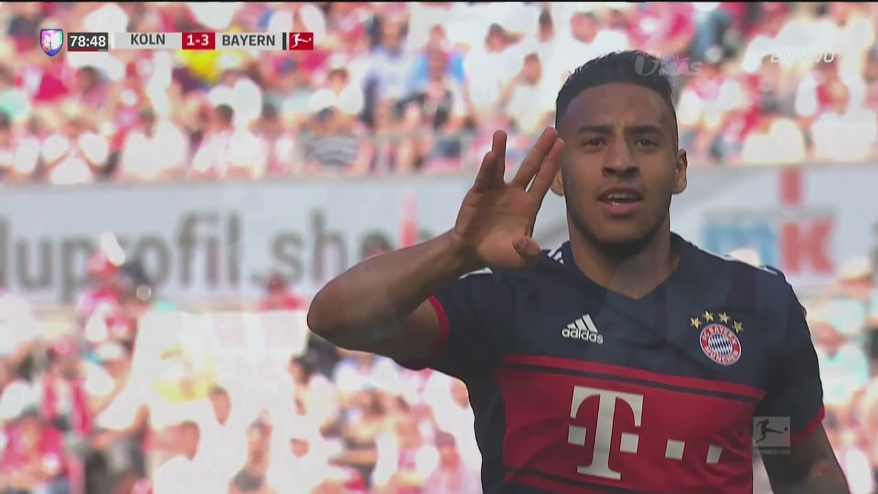 Tras un pase milimétrico del colombiano James Rodríguez, Tolisso decretó de cabeza el gol definitivo, como visitante, del ya coronado campeón de la Bundesliga.