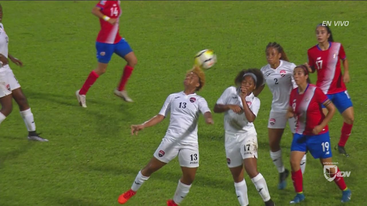 La mediocampista del país 'Tico', Hillary Corrales, sólo tuvo que empujar la pelota dentro de la red, luego de un mal cabezazo (para atrás) de la volante de la islas trinitarias, Paul Shenieka.