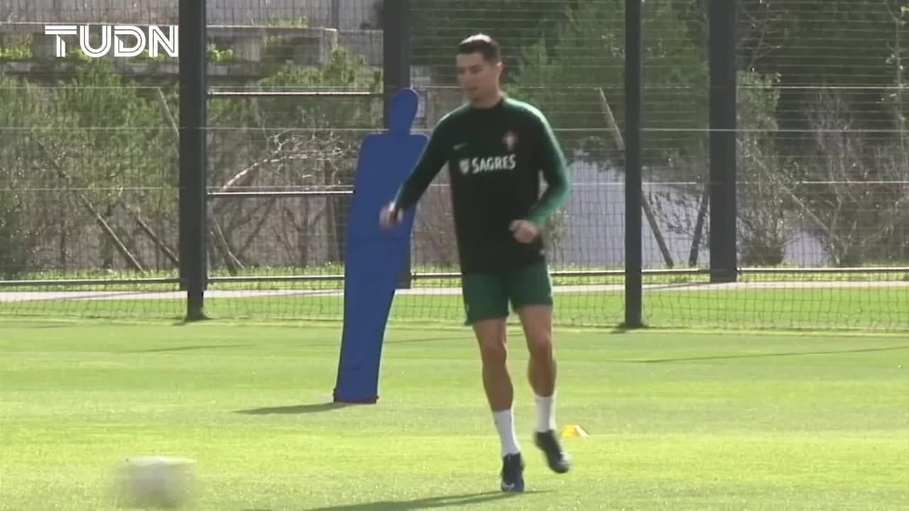 Así entrenaron los pupilos de Fernando Santos, mientras al fondo, en la parte de arriba se aprecia la figura de Cristiano, con los brazos recargados sobre el barandal y no se le ve nada tranquilo, detesta perderse partidos por lesiones, suspensiones o ahora por coronavirus.