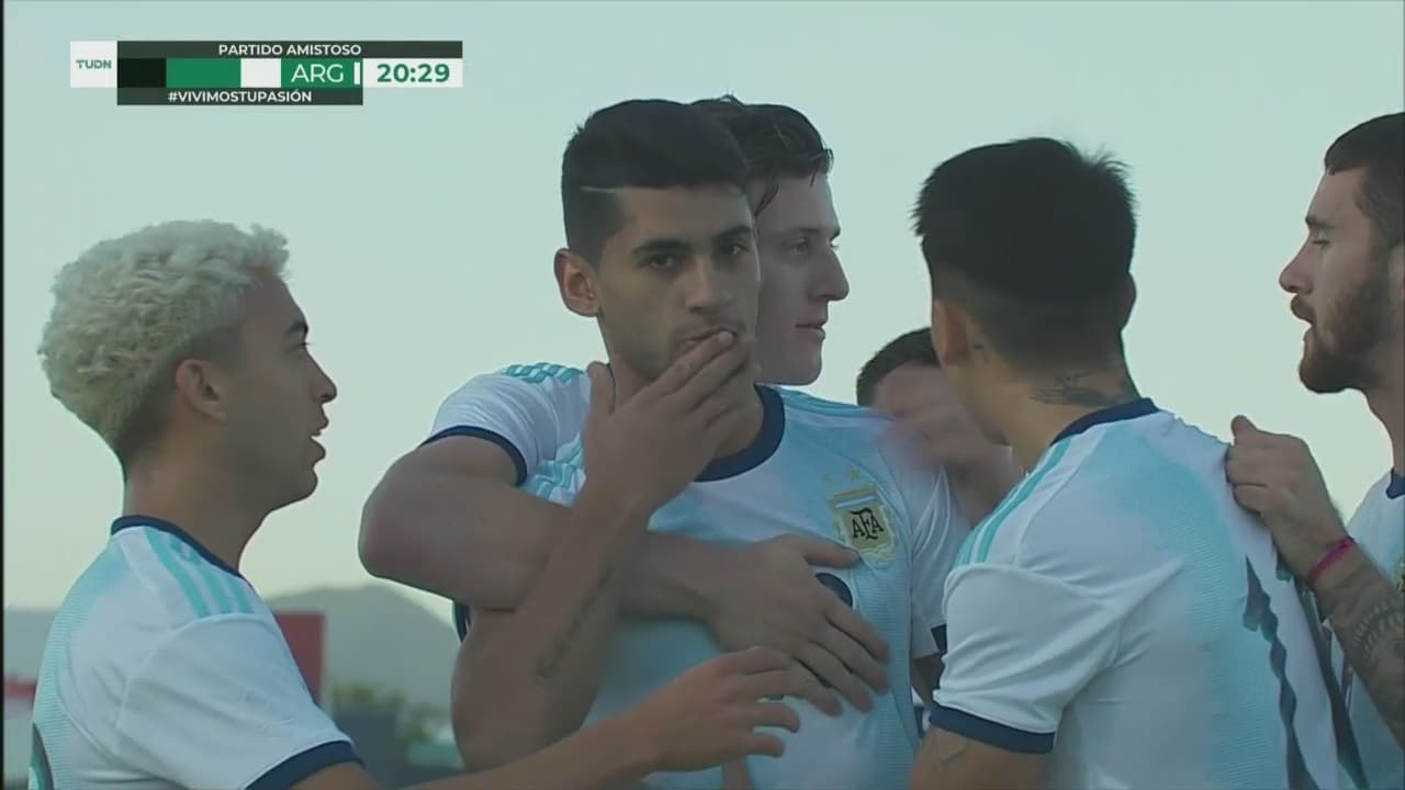 A pelota parada el defensa argentino conecta de cabeza para vencer la estirada de Sebastián Jurado.