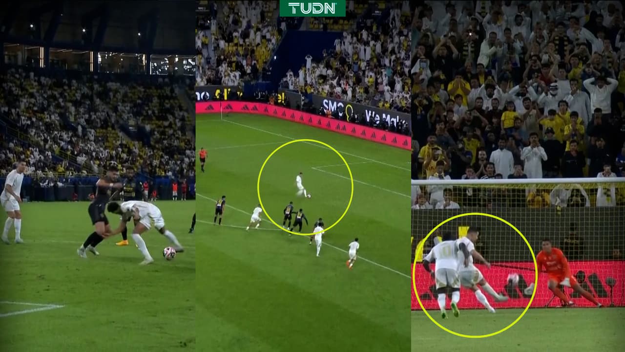 Un jugador del Al-Nassr fue derribado dentro del área luego de que Cristiano Ronaldo intentara cabecear el esférico y el árbitro de inmediato señaló la falta.
