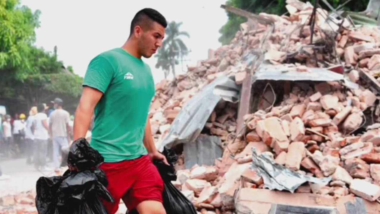 Al exjugador se le pudo ver hasta altas horas de la noche cargando los camiones de acopio que llevarán las donaciones de la gente a las poblaciones morelenses, entre ellas Jojutla, una de las poblaciones más dañadas por el temblor de 7.1 grados que ha dejado más de 250 muertos.