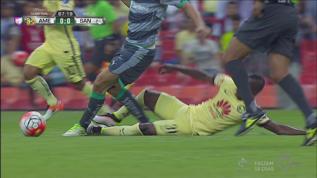 El delantero americanista en su intento por quitarle el balón al 'Pulpo' González se barrió por atrás y el árbitro lo expulsó.