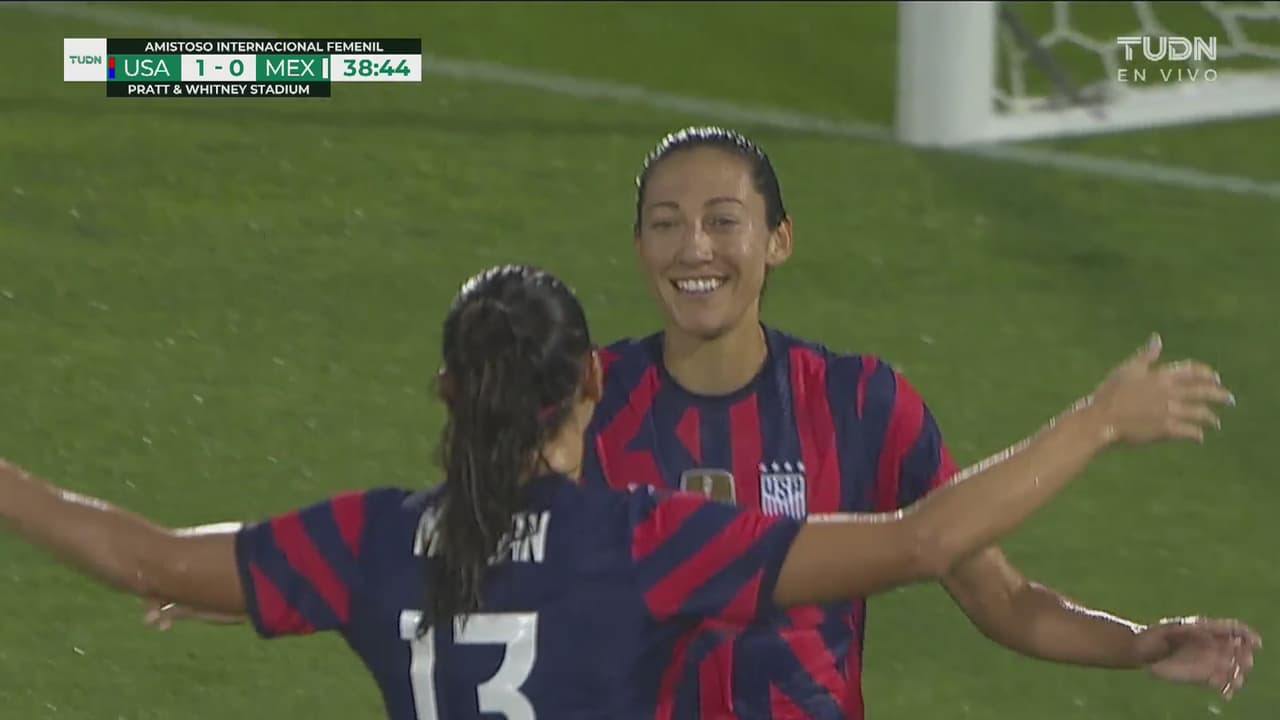 Rapinoe dio un pase hacia atrás al 38' en el área para que Christen empujara el balón.