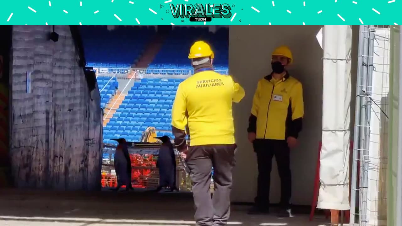 No se sabe si es ‘fake’ o real un video en el que se ven dos pingüinos en las obras del estadio del Real Madrid.