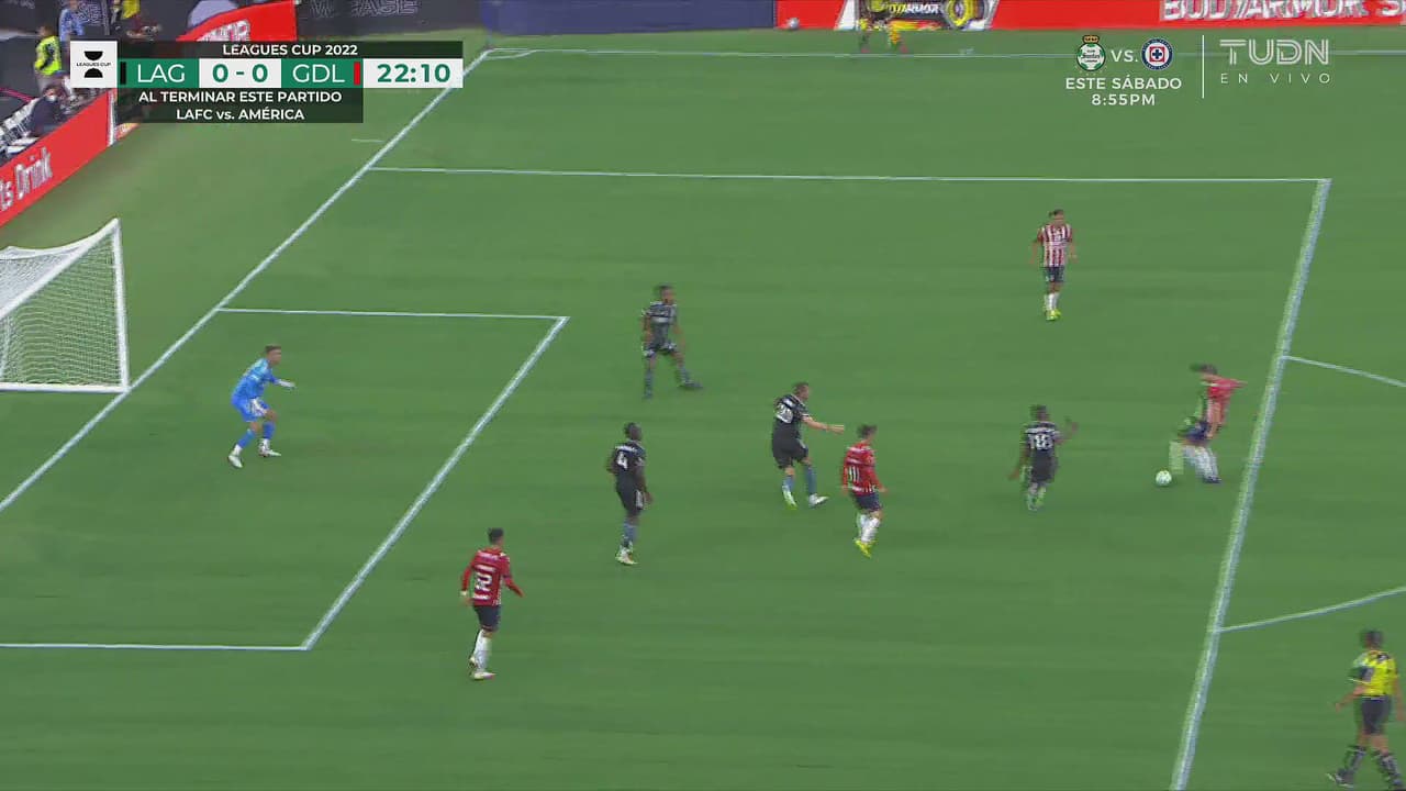 Santiago le pegó con la parte externa de izquierda y se le negó el gol, otra vez al 21’.