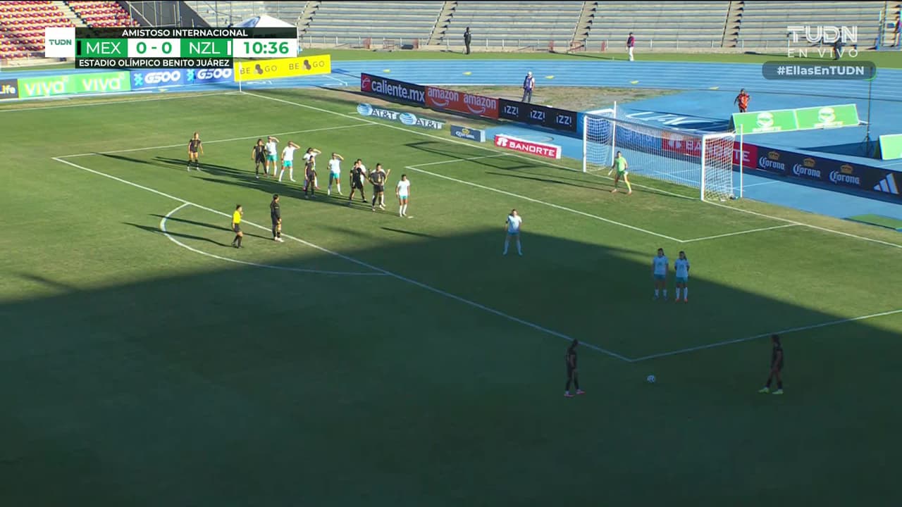 En cobro de tiro indirecto, la futbolista mexicana se adelanta a la marcación y a pesar de no impactar bien, entra en el arco de Nueva Zelanda.