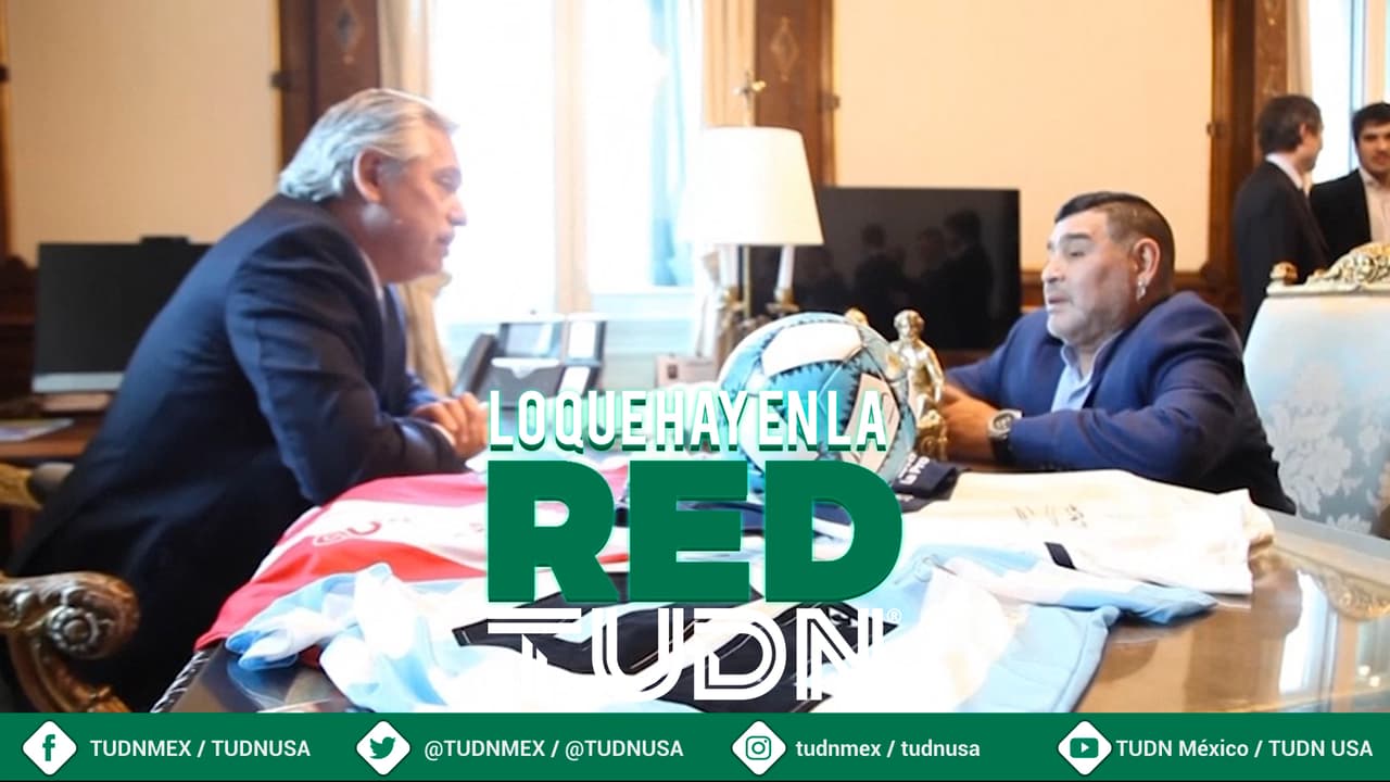 El astro argentino y técnico de Gimnasia y Esgrima La Plata visitó la Casa Rosada y saludó a los presentes en la Plaza de Mayo.