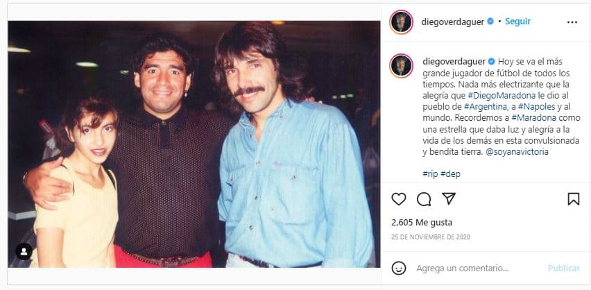 "Recordemos a Maradona como una estrella que daba luz y alegría a los demás, en esta convulsionada y bendita tierra. Ana Victoria", escribió Diego Verdaguer en aquel momento.