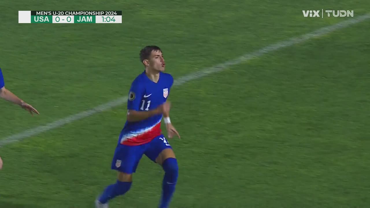 En el arranque del partido, la mala salida de Jamaica es aprovechada para que el futbolista se acomode el esférico y lo mande a las redes para el 1-0.