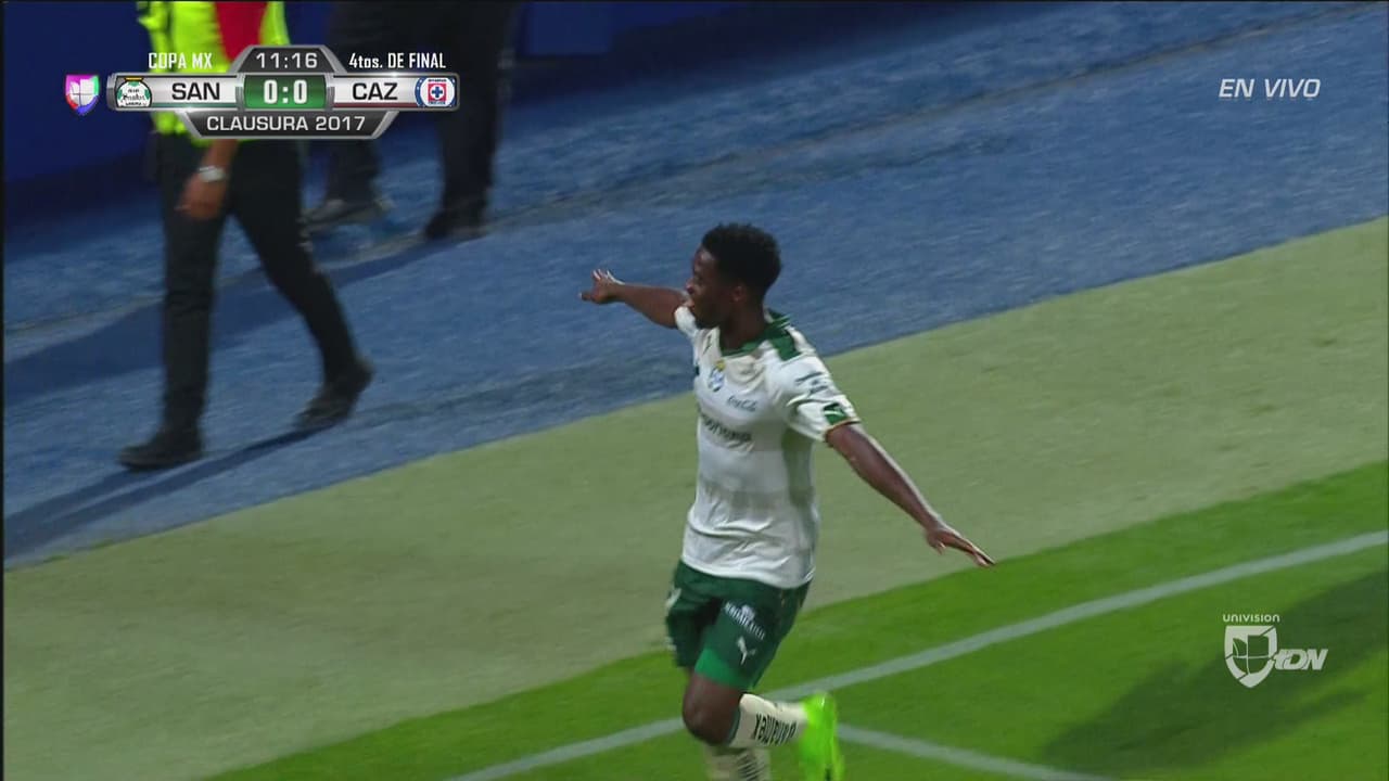 El atacante de Santos dejó a un rival en el camino con una espectacular 'bicicleta' y ante Jesús Corona definió con categoría por un costado.