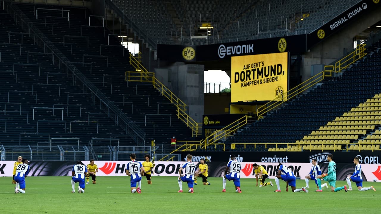 Dortmund y Hertha Berlín se arrodillan en el campo en protesta contra el racismo