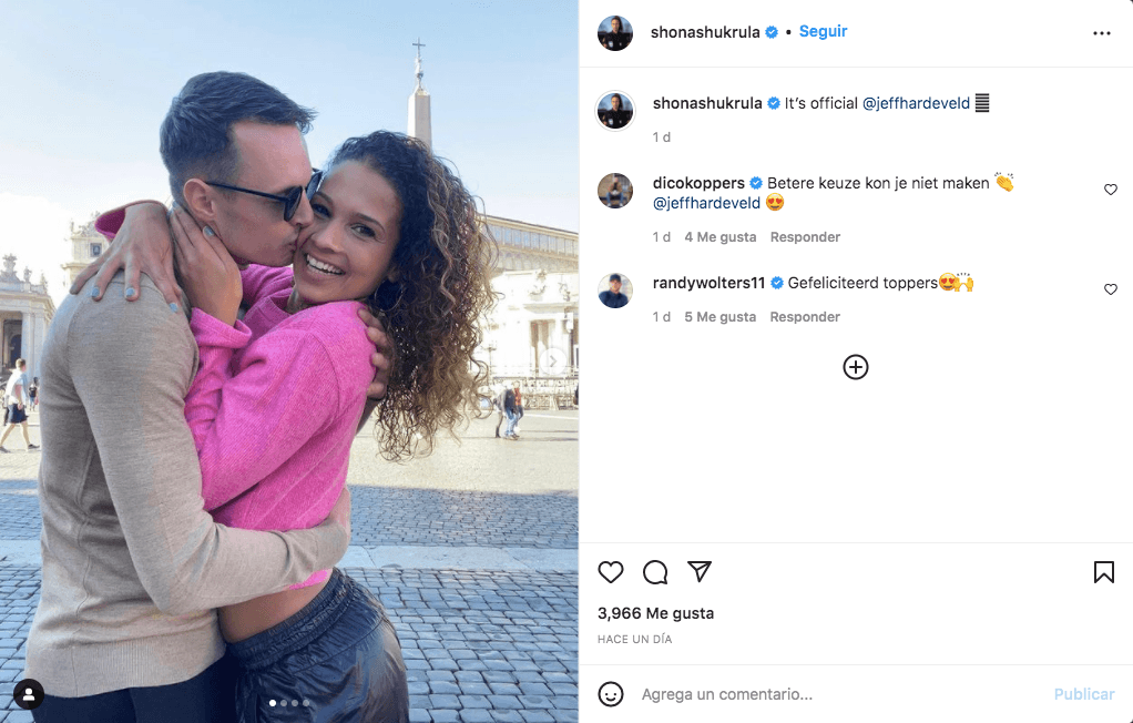 “Es oficial, Jeff Hardeveld”, escribió en su cuenta personal de Instagram junto a una serie de fotografías con su actual pareja.