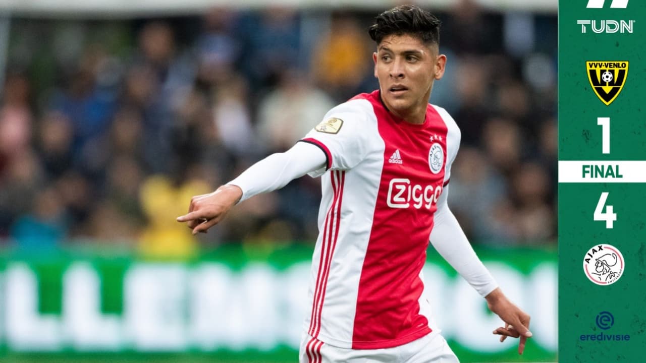 Edson Álvarez debutó en la victoria del Ajax 1-4 ante el VVV-Venlo, durante la tercera jornada de la Eredivisie tras entrar de cambio al minuto 73 por el argentino Lisandro Martínez en el Seacon Stadion.