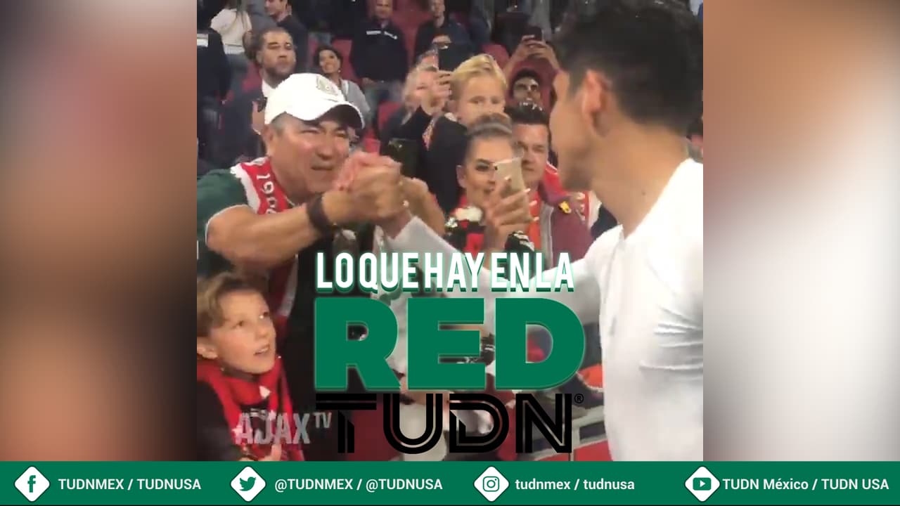 El jugador del Ajax se acercó a unos aficionados para darles su camiseta.