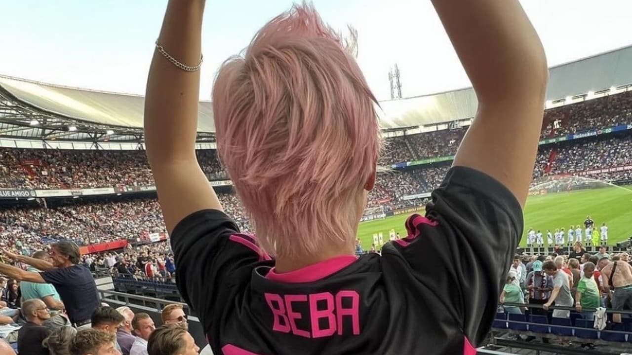 Con la playera del equipo, el nombre de “Beba” y el número 29 a su espalda, la pareja del mexicano fue captada en pleno momento en el que Santi entraba la campo mientras ella le hacía un corazón con sus manos y gritaba y saltaba de emoción.