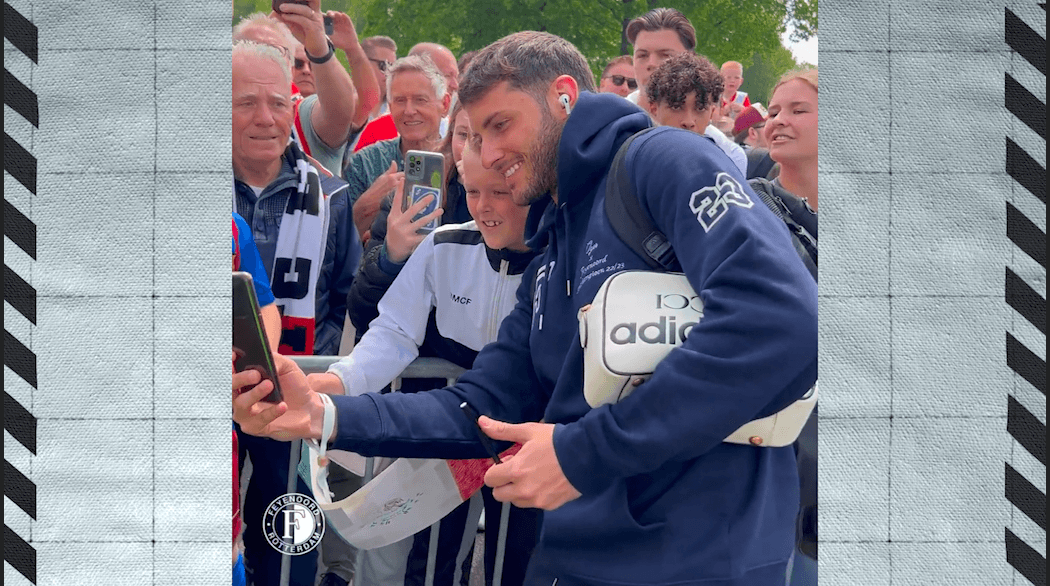 Desde dibujos de banderas mexicanas hasta gritos de "Santi" en el momento en el que el 'Bebote' baja del camión de Feyenoord.