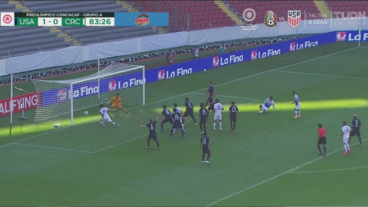 El cabezazo en el área pasó a nada del defensor Tico que no pudo empujar el esférico a las redes al 83’.