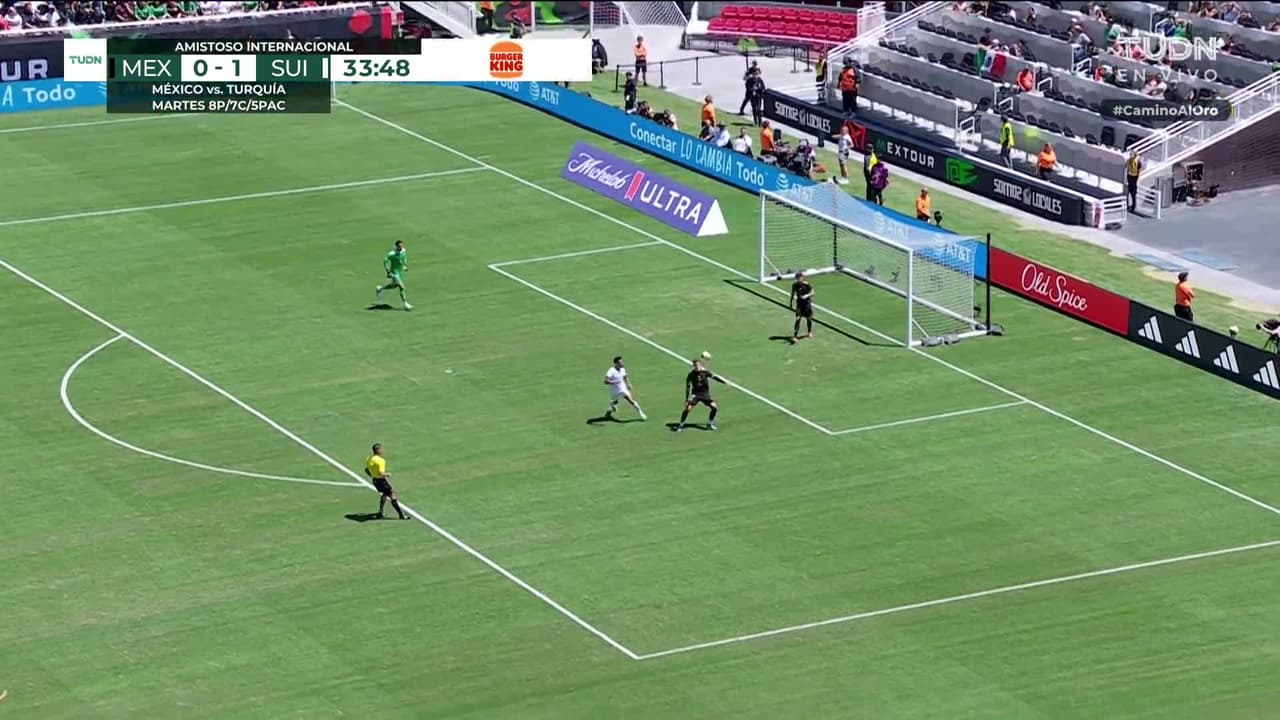 Vincent Sierro (Suiza) remata al travesaño| zurdazo desde fuera del área.