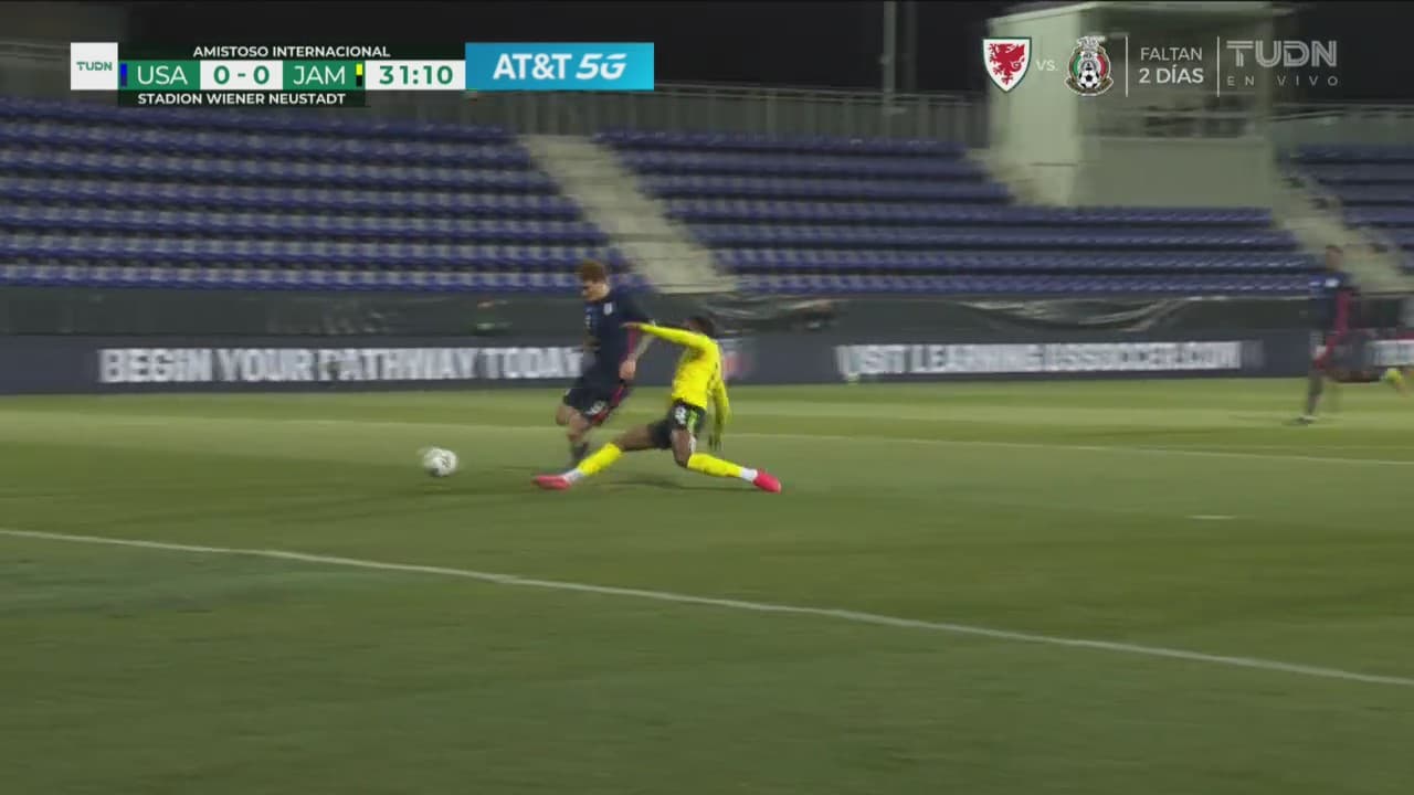 Pulisic dio un gran pase al área, pero el defensa de Jamaica se convierte en héroe y evita el remate.