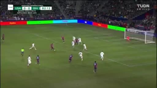 El atacante de Team USA ve un pequeño espacio, se anima y la manda por un costado, al 83'.