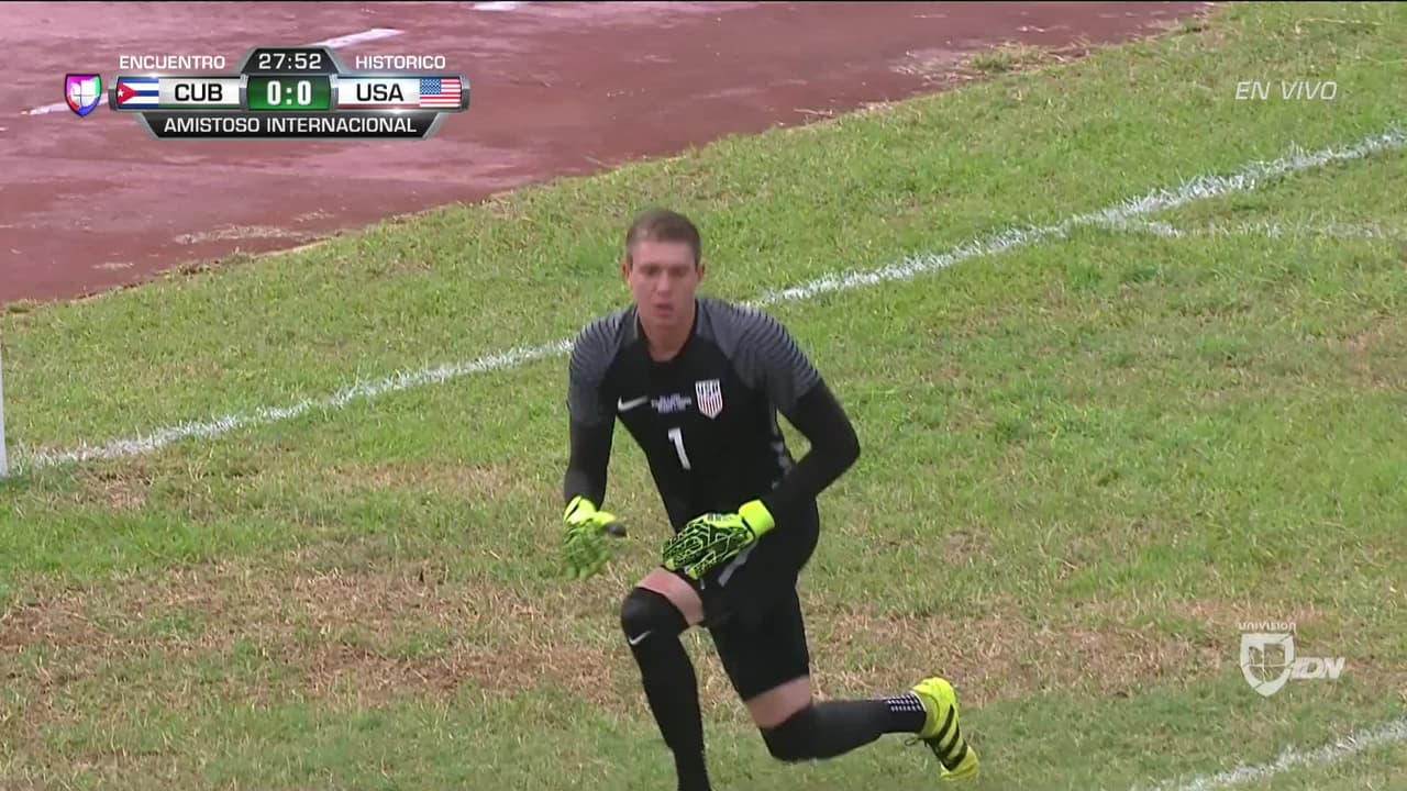 Cuba tuvo en sus pies el primer gol del juego, pero el portero estadounidense desvió con las uñas el remate a gol.