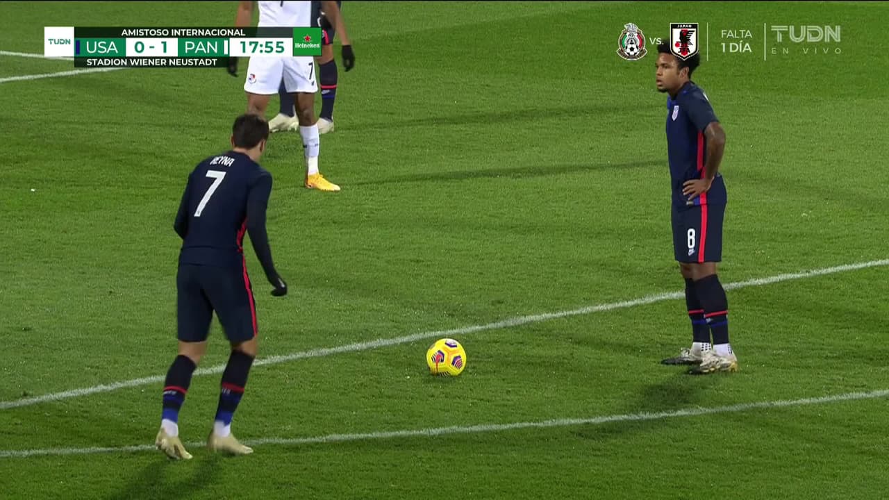 ¡Gol! Estados Unidos 1| Panamá 1. Giovanni Reyna (Estados Unidos) marca de tiro libre directo| Disparo con la derecha.