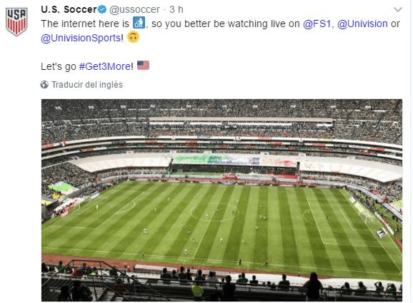 "La Internet aquí es una basura, así que más les vale que lo estén viendo en vivo por FS1, Univision o Univision Deportes", fue la publicación de US Soccer. "Vamos #Get3More!".