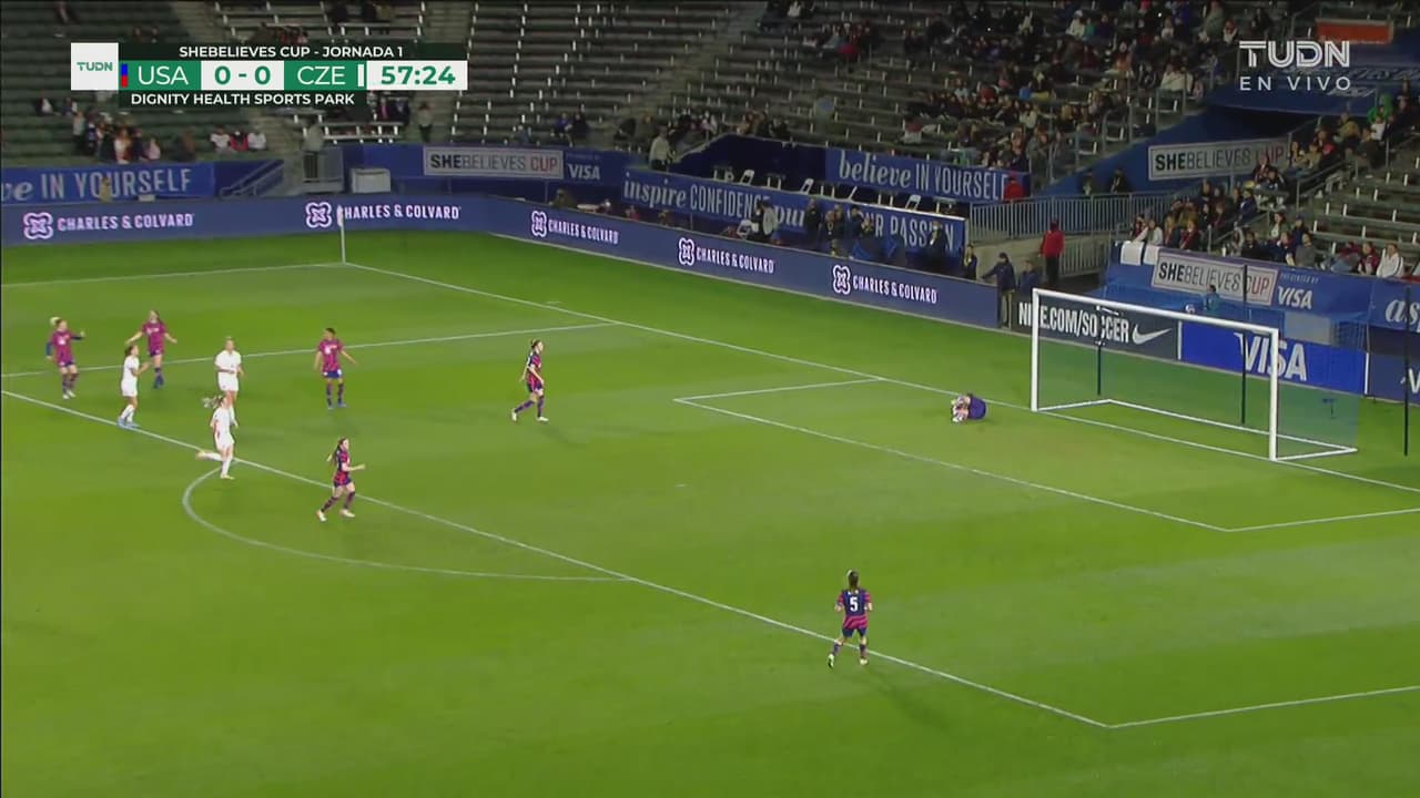 La guardameta de Estados Unidos tiene que recostarse sobre su brazo derecho tras remate de Stasková al 58'.