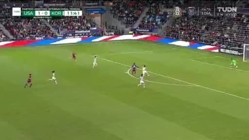 Carli mandó un pase filtrado y su compañera remató sola, pero su intento se fue desviado al minuto 11.