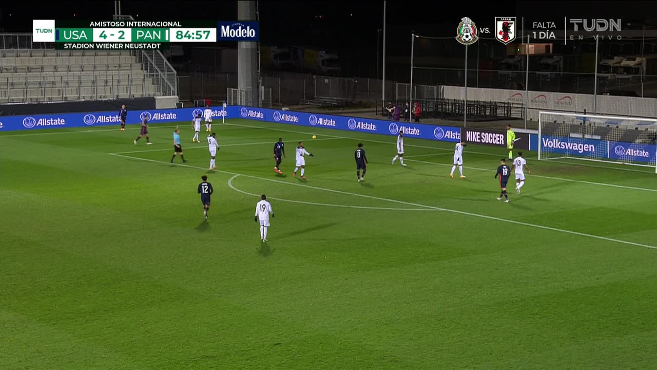 Tiro atajado raso al centro del arco. Abdiel Ayarza (Panamá) Disparo con la derecha desde el centro del área. Asistencia de Omar Browne con un pase de cabeza.
