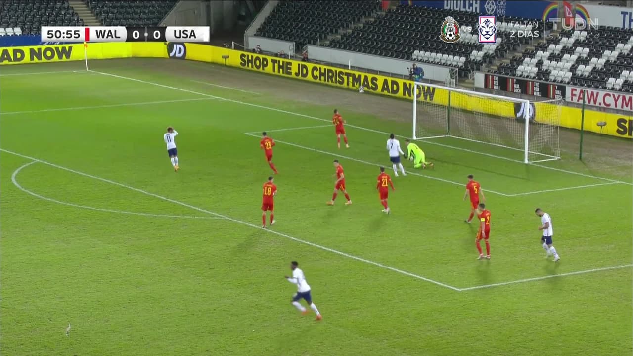 Tiro atajado. Sebastian Lletget (Estados Unidos) Disparo con la derecha desde el lado derecho dentro del área.