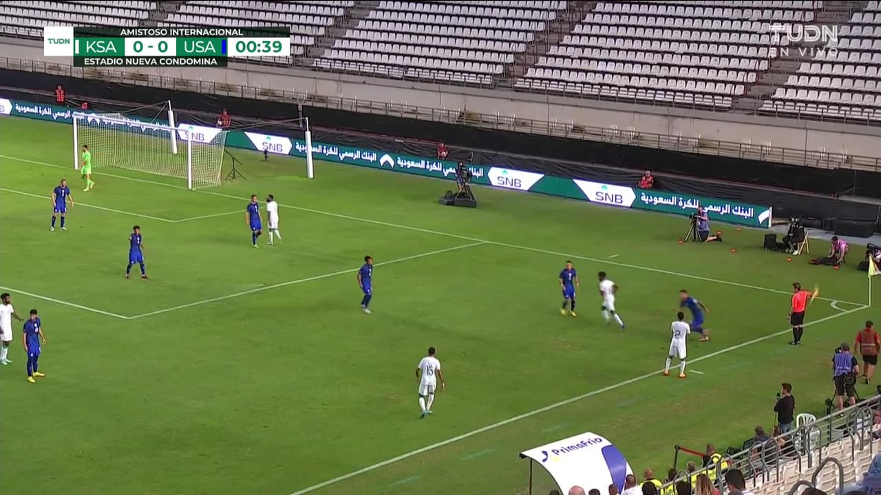 Tiro atajado junto al lado derecho de la portería. Sultan Al Ghannam (Arabia Saudita) Disparo con la derecha desde fuera del área. Asistencia de Riyadh Sharahili con un centro al área.